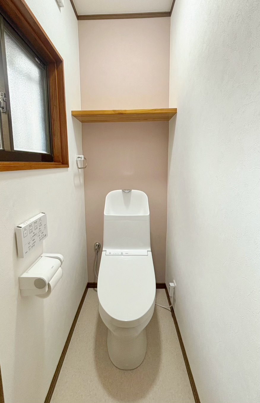 明るく清潔感のある、やさしい雰囲気のトイレ空間に仕上がっています。
